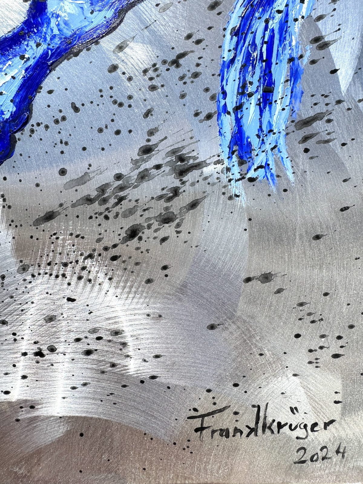 „Stier Adrian“ ist ein beeindruckendes Ölgemälde auf Aluminium von dem renommierten Künstler Frank Krüger. Das Werk zeigt einen kraftvollen blauen Stier in dynamischer Bewegung, der die Essenz von Stärke und Vitalität verkörpert. Dieses Kunstwerk ist Teil der Sonderedition, die Krüger anlässlich des 20. Jubiläums der Galeria Frank Krüger geschaffen hat.