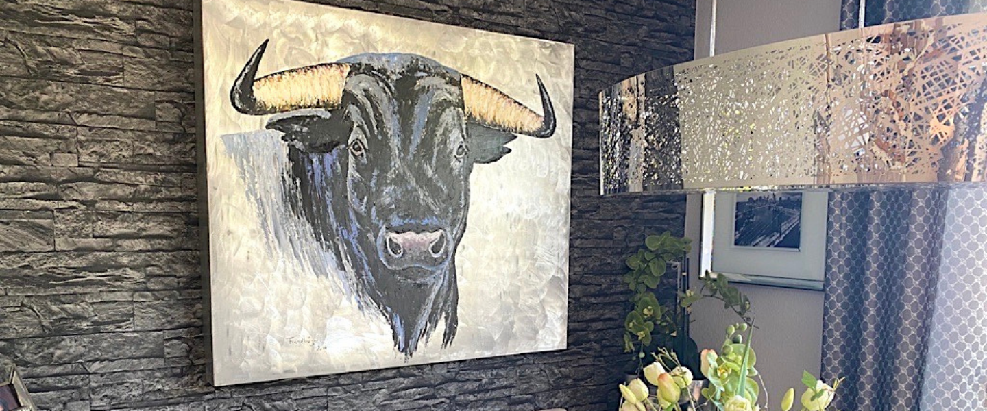 Manchmal melden sich auch Menschen mit einem Foto von einem Kunstwerk, das sie vor vielen Jahren bei Frank gekauft haben. Sie haben noch immer sehr viel Freude daran und zeigen deshalb gern und stolz, wie es ihr Zuhause oder ihr berufliches Umfeld verschönert. Das sind dann die Momente, in denen auch Frank und Laura manchmal die Worte fehlen, denn eine schönere Bestätigung für die Kunst können sie wohl kaum bekommen!