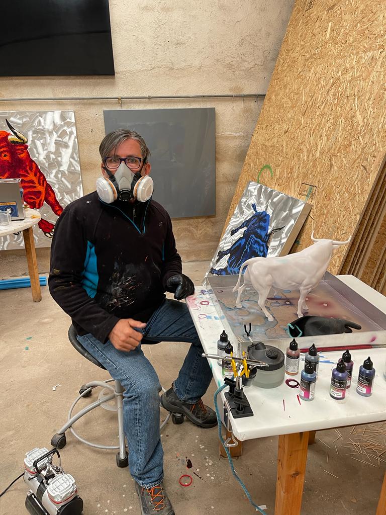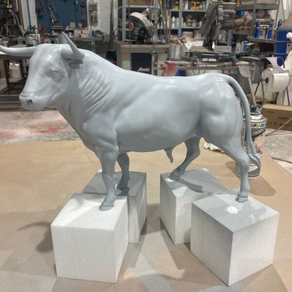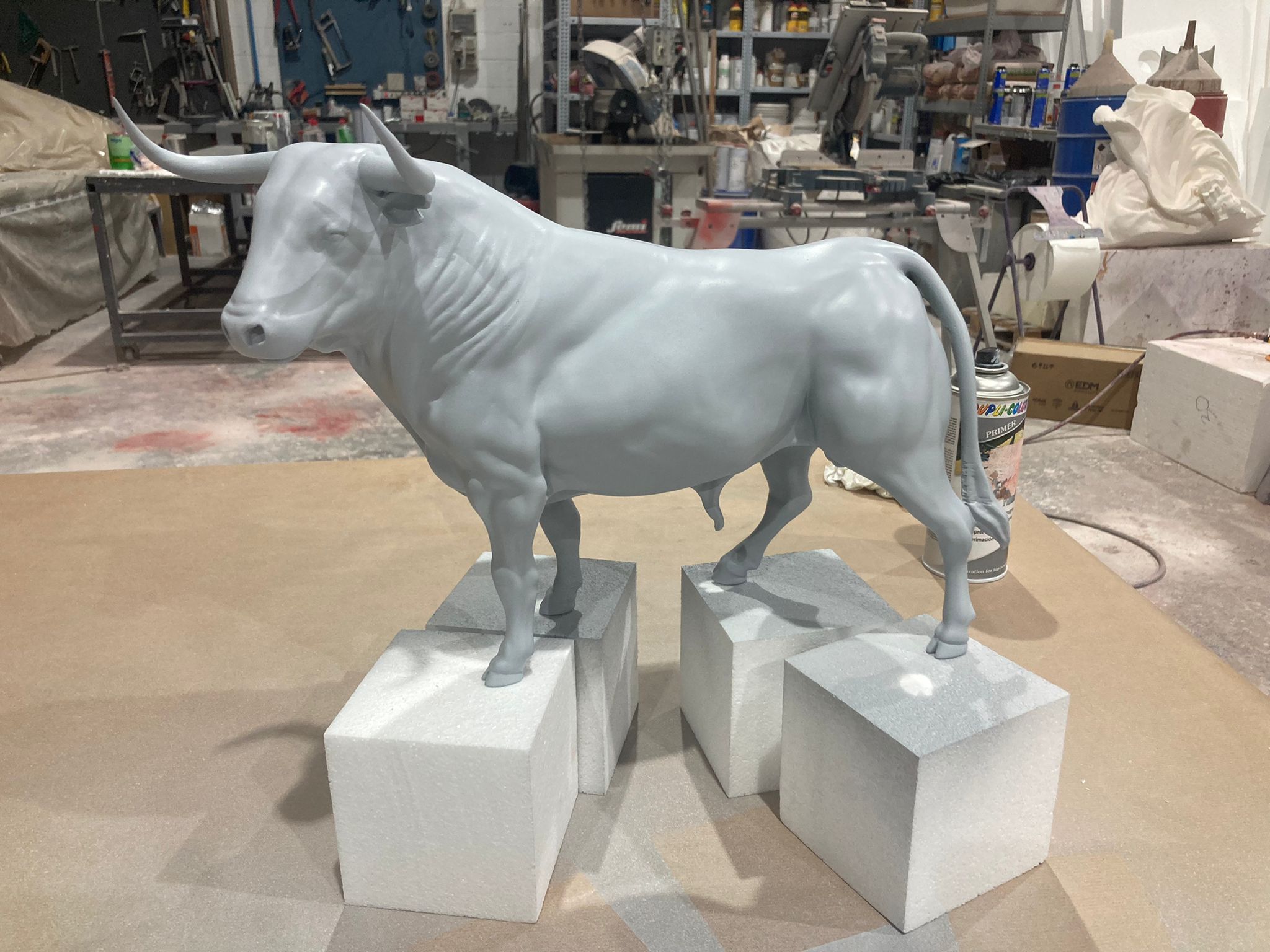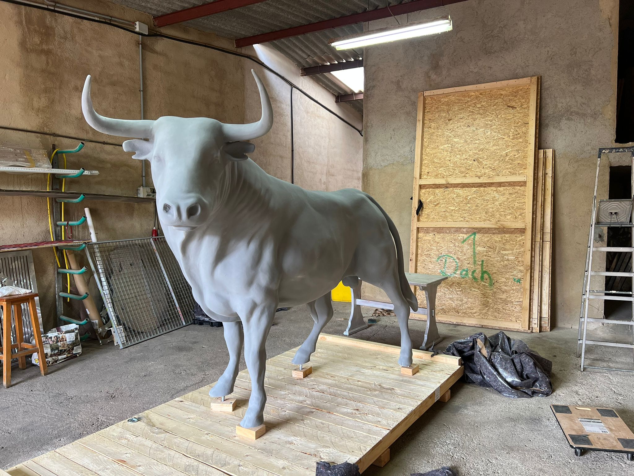 Lebensgroße Stiere als Kunstwerk? Diese Idee beschäftigt den Künstler Frank Krüger schon lange. Dementsprechend schaute er sich schon lange um, sah sich bereits fertige Stiere an, die er dann eventuell mit seinen Visionen und Farben zu Kunstwerken macht. Aber nichts traf seine Vorstellungen. Die Stiere hatten nicht den Ausdruck und die Form, die Frank sich wünschte. Es half also nur eins: Die Skulpturen selbst entwerfen und somit von Anfang an Einfluss darauf haben, wie das Endergebnis aussieht. So begann nicht nur die genaue Ausarbeitung der Idee und der Vorstellung, sondern auch die Suche nach einem Partner, der die Skulpturen anfertigen kann.