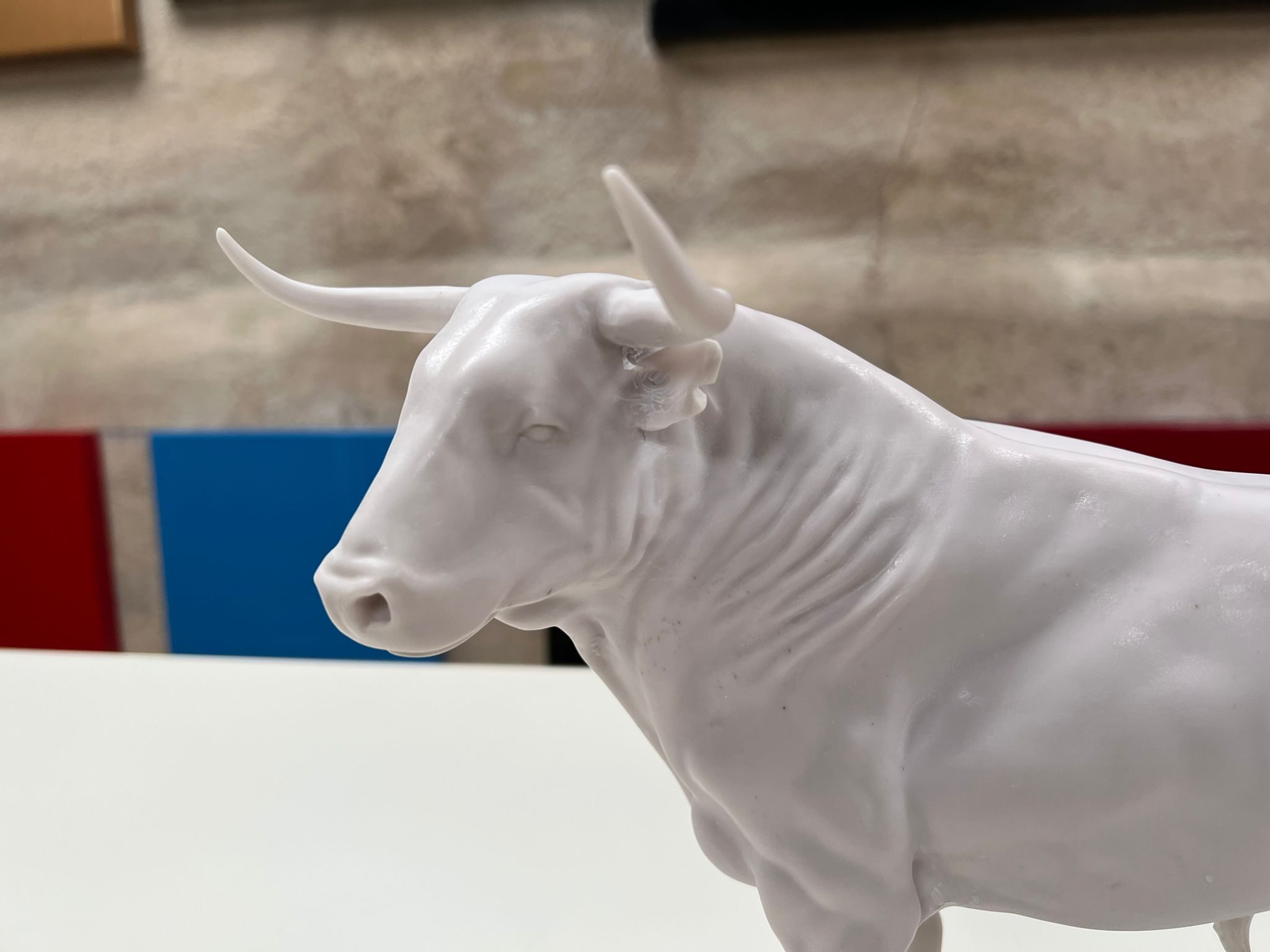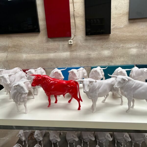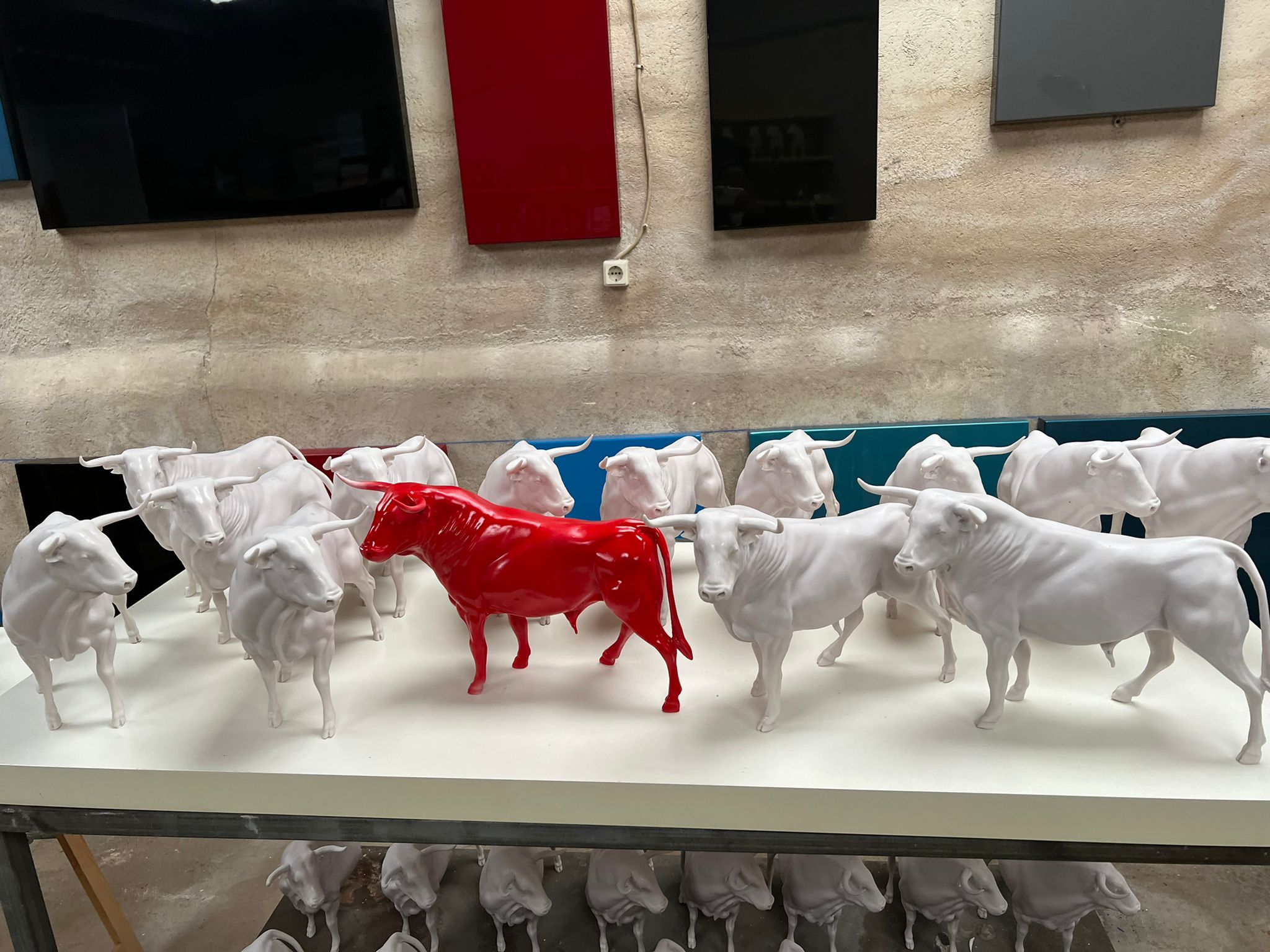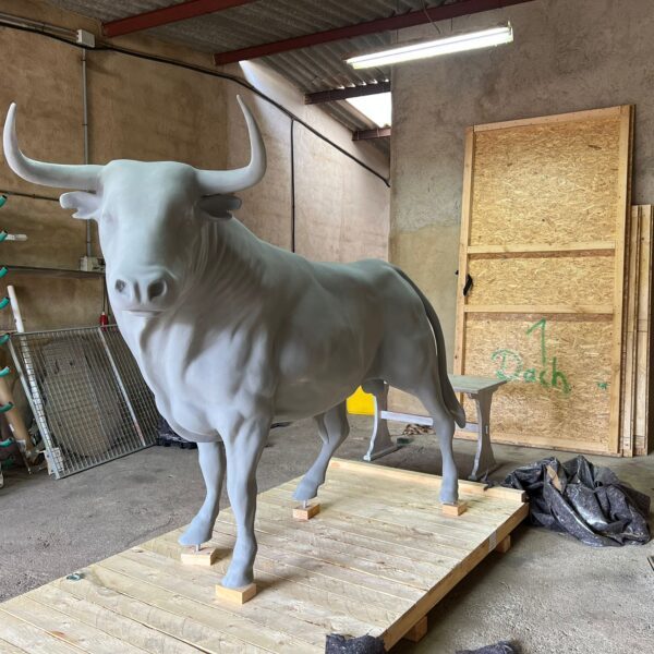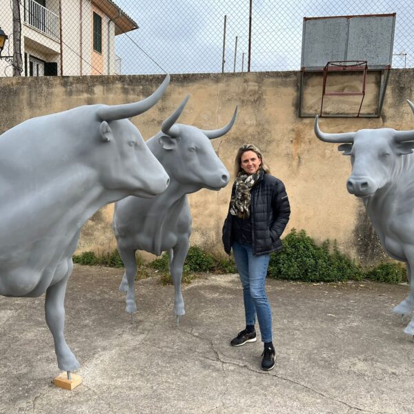 Fündig geworden ist Frank auf dem Festland und nach einigen Reisen und vielen Besprechungen war es dann vor wenigen Monaten soweit: die ersten Prototypen entstanden. Auch dafür reisten Frank und Laura wieder aufs Festland und wie sehr sie es genossen, nach der langen Planung endlich neben einem Exemplar der geplanten Stierherde zu stehen, können wir wohl alle nur erahnen! So wurden die letzten Details geplant, die verschiedenen Größen festgelegt und ab da begann das Warten.